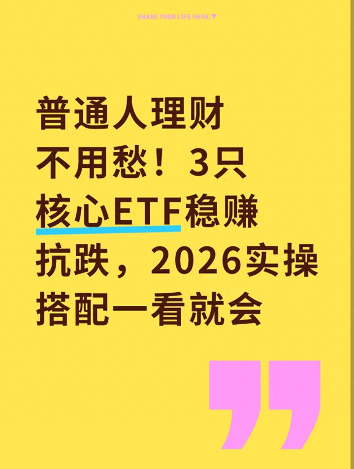 现在不少普通人想理财都犯难,有人怕买股票亏得血本无归,有人买银行理财收益越来越低跑不赢物价,有人跟风买热门基金结果高位站岗被套牢,还有人觉得理财门槛高、流程复杂,手里有闲钱也不敢下手。更让人纠结的是,市面上ETF产品一抓一大把,宽基、行业、债券、商品啥类型都有,跟踪同一指数的ETF能有十几只,新手根本分不清好坏,怕选到规模小的突然清盘,怕选到费率高的慢慢吞掉收益,怕买错标的踩坑亏钱,想找个简单、稳健、适合普通人的理财方式,真是太难了。其实大家完全不用愁,2026年ETF市场新规已经落地,理财更规范更省心,选对3只核心ETF就能适配所有普通人需求,既能稳赚打底,又能抗跌托底,还能兼顾弹性赚收益,今天就用大白话把这事说透彻,3只核心ETF怎么选、怎么搭,实操步骤、费用成本、风险防控全讲明白,让普通人理财不用慌,轻松拿捏稳健收益。